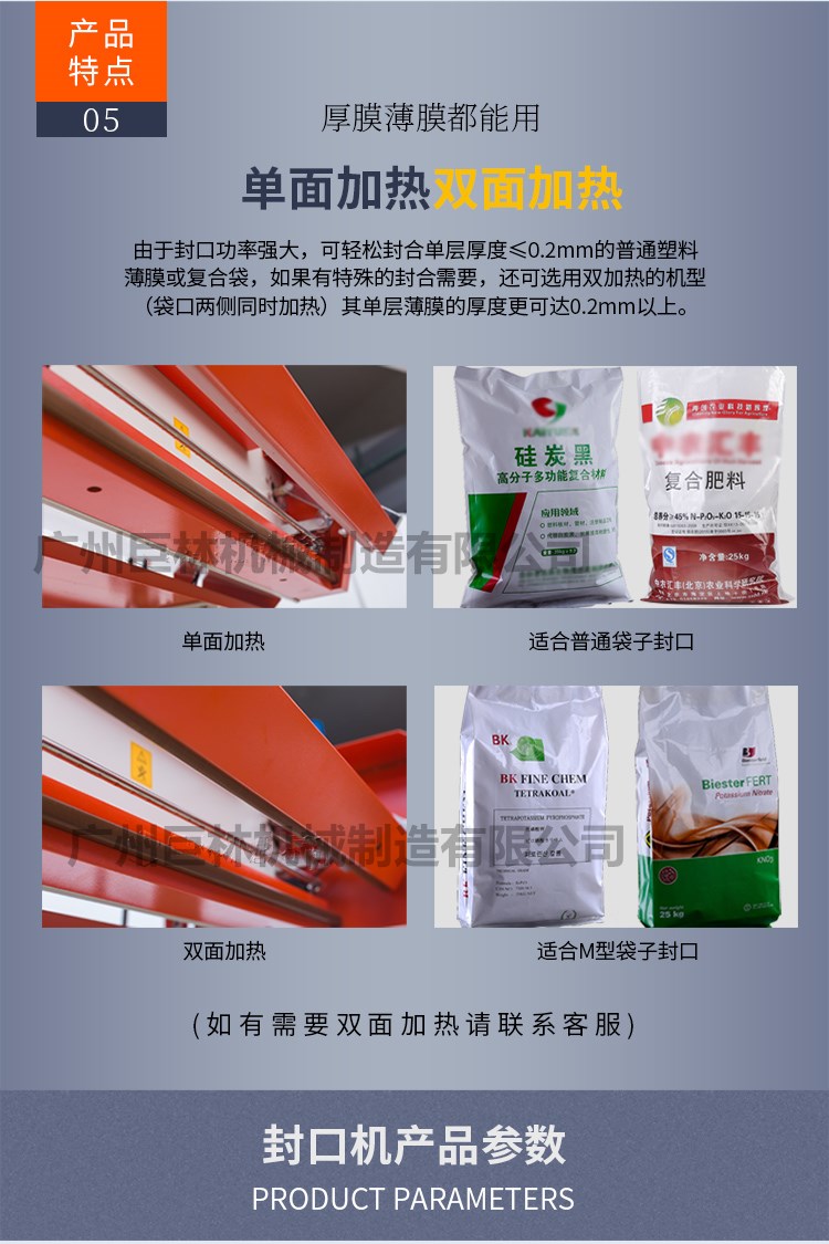 • 该系列封口机采用电子恒温控制和无级调速传动系统,具有自动连续封口、印刷产品标签、一次完成之功能,并可卧、立落地使用。用于单层薄膜及各种复合薄膜的封口、制袋,广泛应用在食品、制药、种子、化工、轻工等部门。