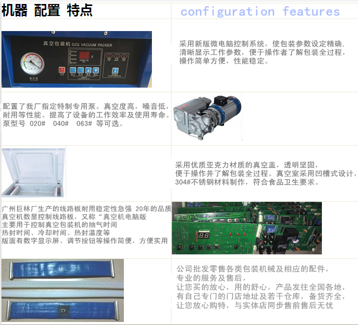 本公司拥有雄厚的技术力量,生产产品多领域,在真空包装机规模最大品种最多的生产商。DZ系列真空机选用国内外知名厂家,如南通、上海、德国、日本等真空泵和电器元件的不同配置。机体全不锈钢全封闭、轴流散热形式、耐恶劣环境长时间连续使用具有高稳定性。是目前国内领先机型,可替代进口机型。